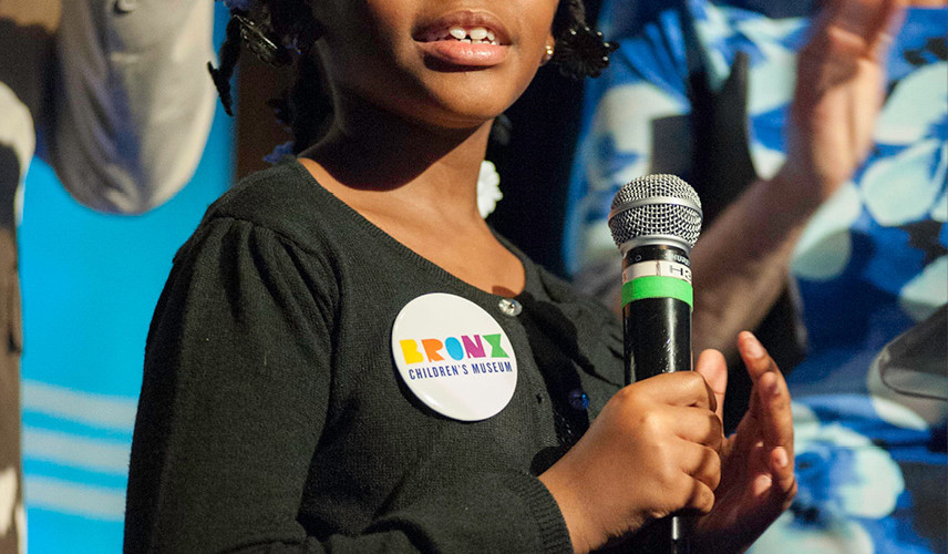 Leslie Wright, NYC Regional Director for New York State Park, Recreation & Historic Preservation, took to the stage to share work being done at Roberto Clemente State Park as part of the Little Friends of the Museum program. She introduced 2nd grader Cerenity Blanding, who said, “I love to learn about nature and explore more about the art in the Bronx. I want people to aspire to go outside, explore trees, bugs and flowers located all around.”